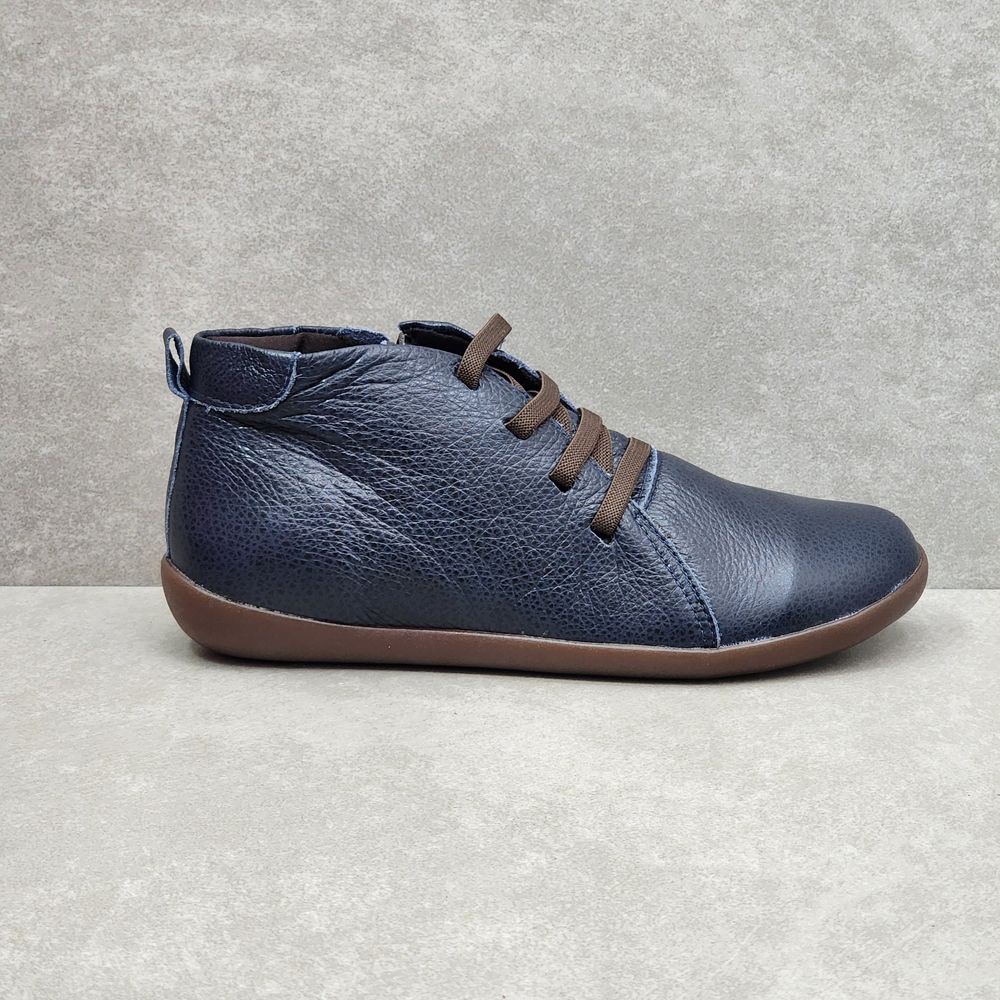 Bota Feminina Zimbauê Em Couro Com Elástico - Azul Marinho